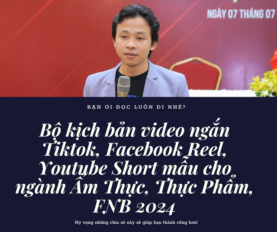 Bộ kịch bản video ngắn Tiktok, Facebook Reel, Youtube Short mẫu cho ngành Ẩm Thực, Thực Phẩm, FNB 2024 là một công cụ hữu ích cho các doanh nghiệp ẩm thực, thực phẩm muốn tạo ra những video ngắn chất lượng cao và hiệu quả. Bộ kịch bản này cung cấp các ý tưởng và hướng dẫn cụ thể về cách tạo ra những video ngắn thu hút và thuyết phục người xem.