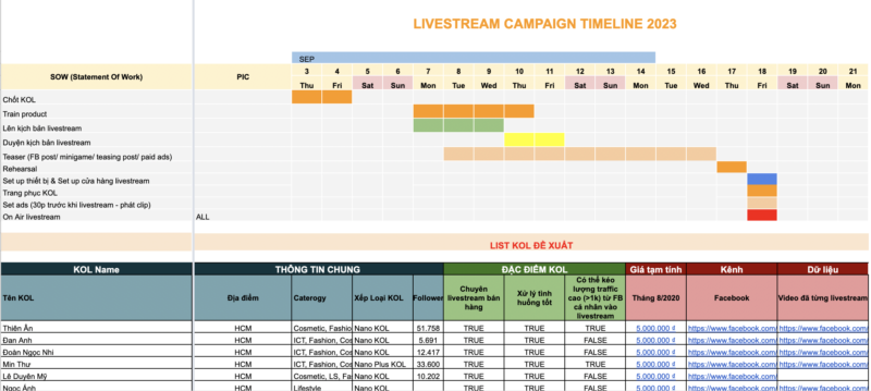 2 mẫu thông dụng nhất (livestream bán hàng) cho các chủ doanh nghiệp hoặc đội marketing muốn triển khai sự kiện livestream trên các kênh online, bao gồm các chuẩn bị cần thiết về thiết bị, sản phẩm, phân chia công việc và kịch bản livestream
