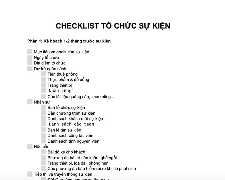 Chi tiết checklist 90% dân tổ chức sự kiện sử dụng, phù hợp cho người muốn học và chuẩn bị tổ chức sự kiện